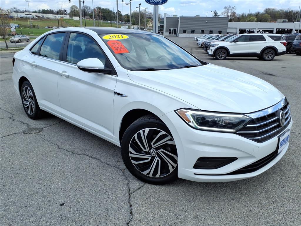 Discover exceptional value with this 2021 Volkswagen Jetta SEL Premium, located in Salem, VA. Powered by a responsive 1.4L 4-cylinder gasoline engine and front-wheel drive, this Volkswagen Jetta balances fuel efficiency with confident everyday performance. The SEL Premium trim elevates comfort and convenience with premium features designed for an enjoyable drive. Navigate with confidence using the integrated navigation system, get where you're going efficiently and with minimal distraction. Automatic climate control ensures the cabin stays comfortable for everyone, while remote start adds convenience on chilly mornings or hot afternoons. Safety is prioritized with forward collision warning to help prevent or reduce the severity of impacts, and a back-up camera that improves visibility and maneuverability in tight spaces. The interior offers refined touches, supportive seating, and a user-friendly infotainment layout, perfect for commuters and families alike. Well-maintained and ready for the road, this Volkswagen Jetta SEL Premium presents the best price in the area, giving savvy buyers an outstanding combination of features, performance, and value. Located in Salem, VA, this vehicle is an excellent choice for drivers seeking a reliable, feature-rich compact sedan without compromise. Schedule a viewing or test drive today to experience the comfort, technology, and safety this 2021 Volkswagen Jetta SEL Premium delivers. Competitive pricing makes this an opportunity you won't want to miss.